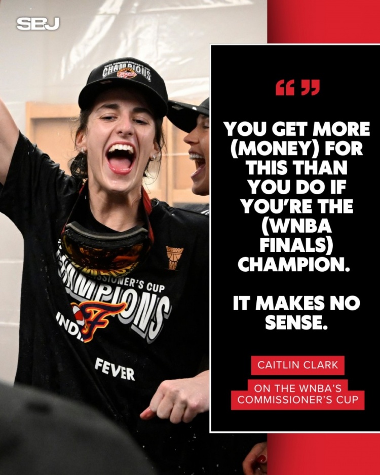 但作为对比,拿到WNBA总冠军的话,每位队员只会额外拿到20825美元的奖金,这比赛季中期的总裁杯奖金还低。狂热球星克拉克就表示:“你拿到这个总裁杯得到的奖金比你拿到总冠军得到的奖金还要多,这就很离谱。”